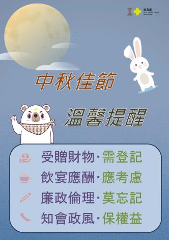 中秋佳節即將來臨,在團圓共聚、歡慶佳節之際,嘉義市政府提醒全體市府同仁與市民朋友,務需共同遵守《公務員廉政倫理規範》相關要求及規定,在享受節慶氛圍時,也不忘維護清廉誠信的社會風氣。公務員廉政倫理規範明訂,公務人員應避免接受可能影響公正執行職務的餽贈或其他不當利益,並以守法、廉潔及專業的態度,作為市民 ...更多